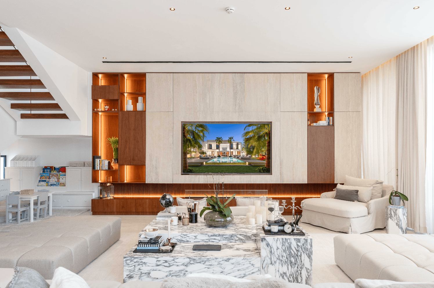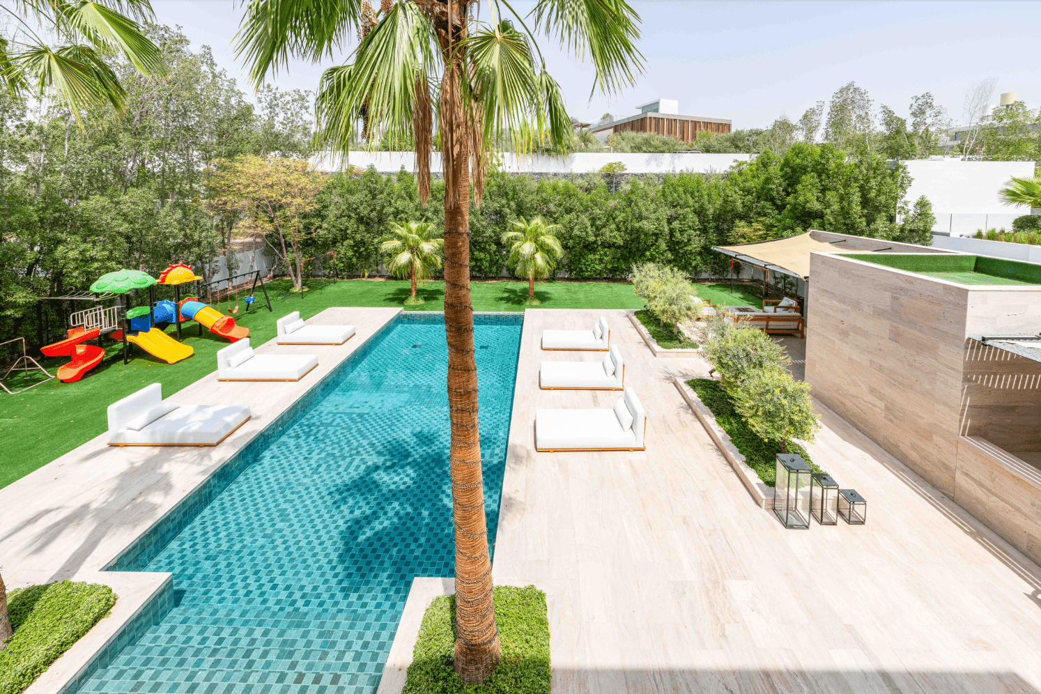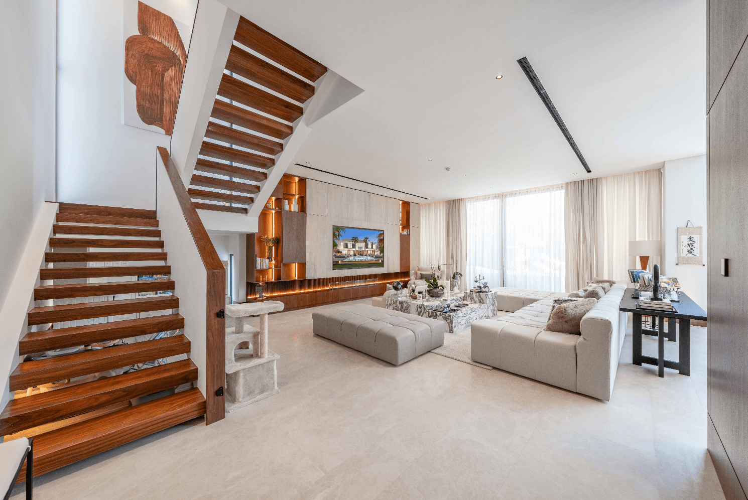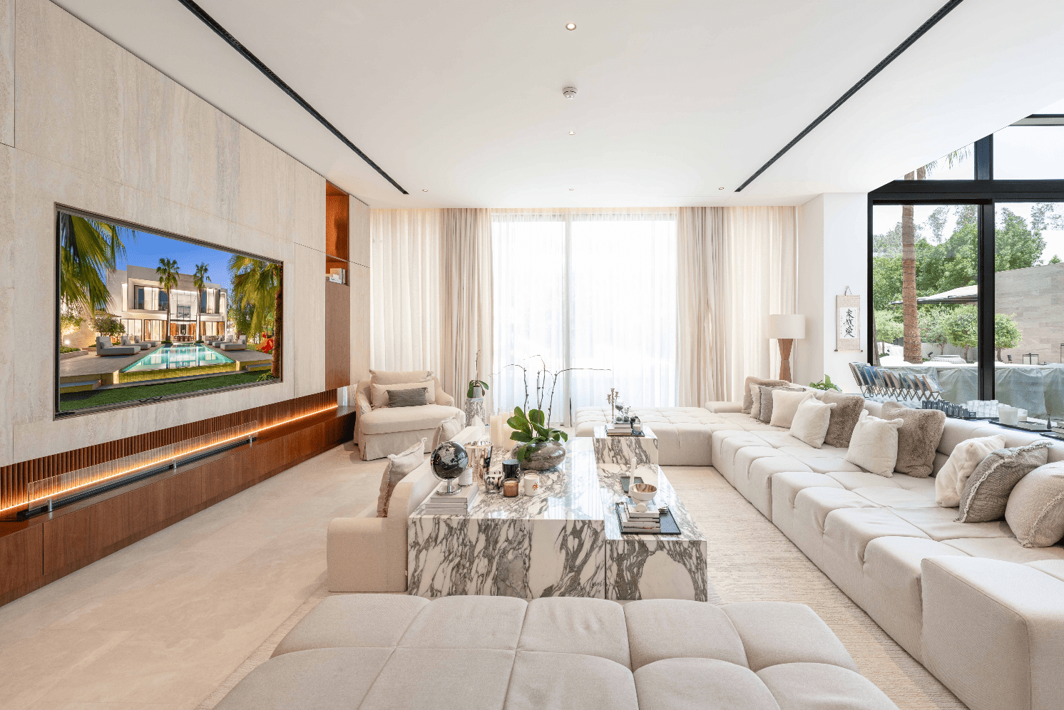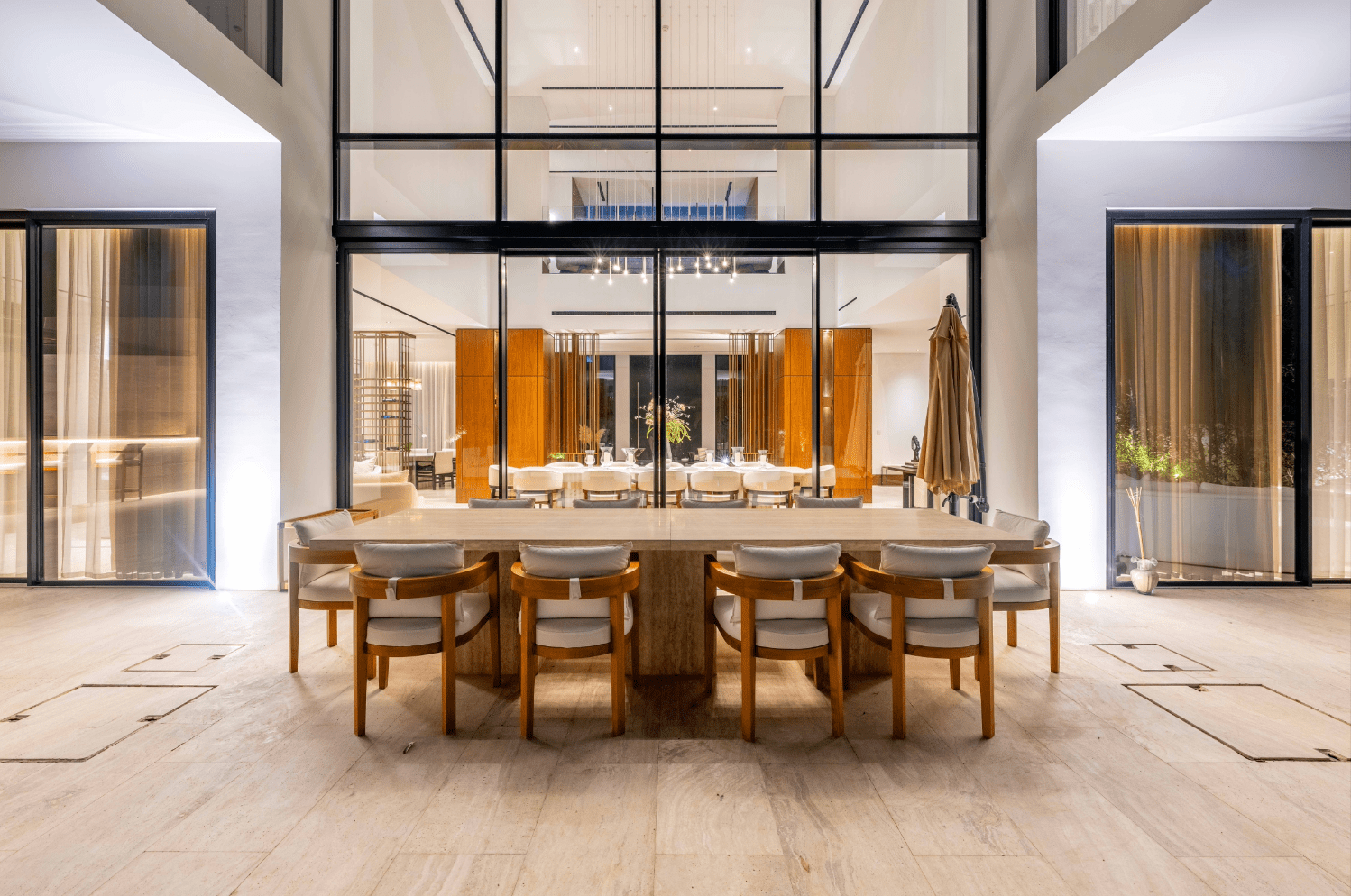 – Other material in the villa is Travertine is a luxurious natural stone that was used in this high-end villa designs due to its elegance and versatility.