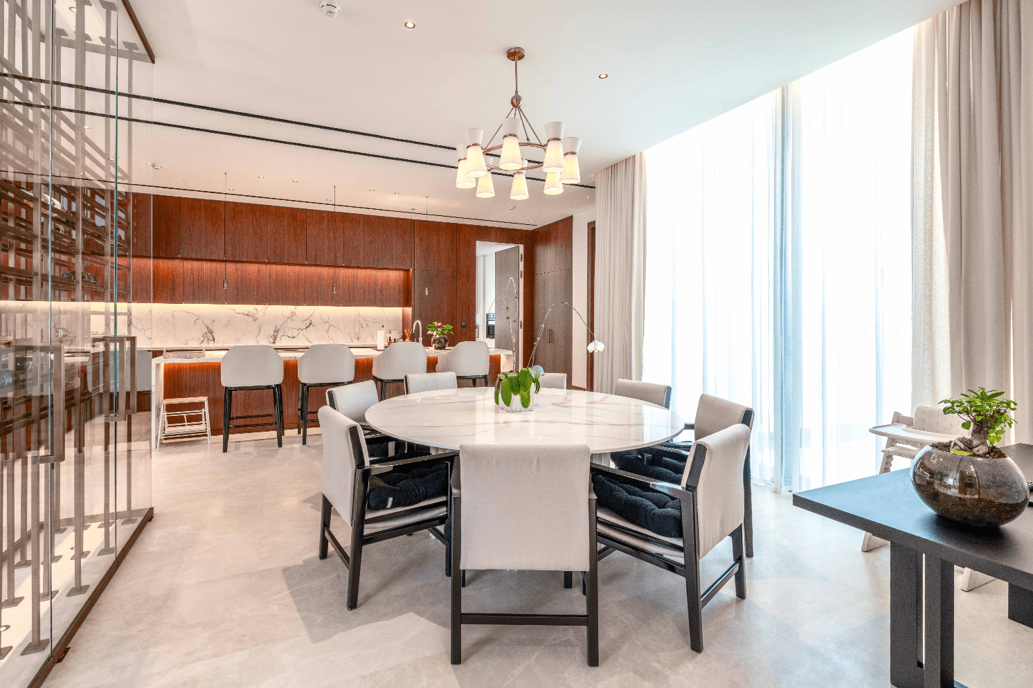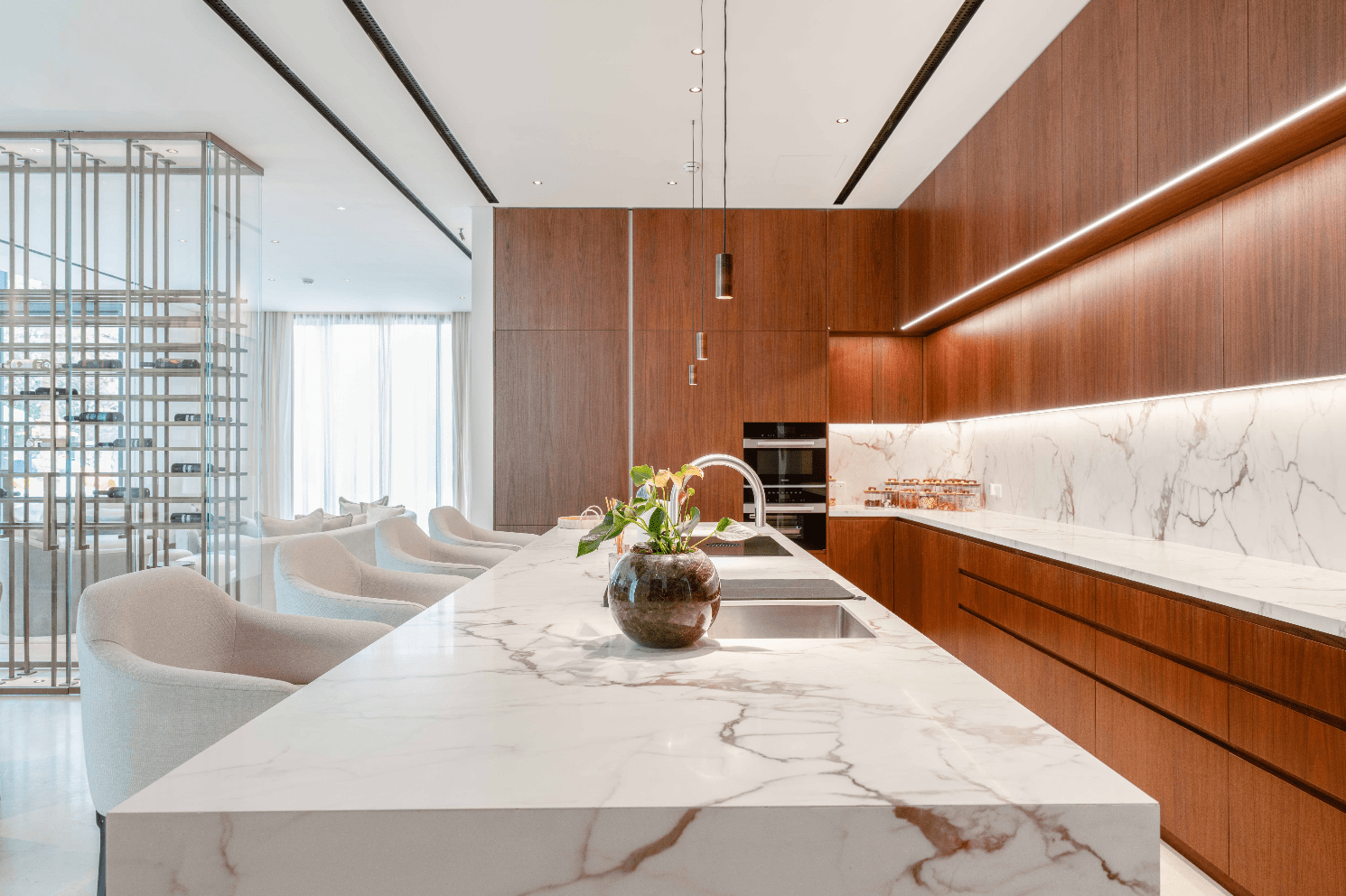 – The primary inspiration for the villa was the Bulgari Residences, which influenced the use of brown tones complemented by carefully selected accents.